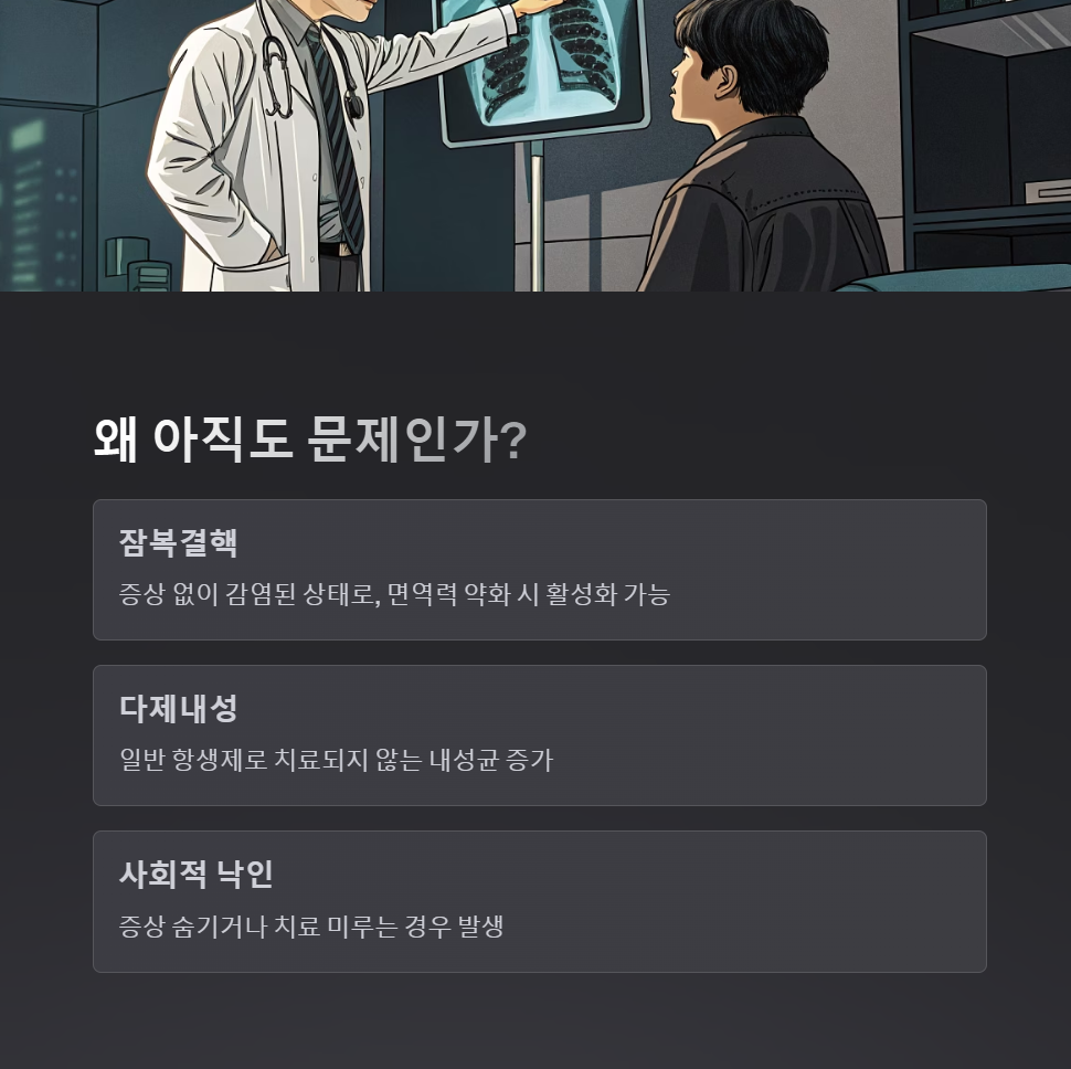 결핵이 여전히 문제인 이유는 크게 세 가지입니다.