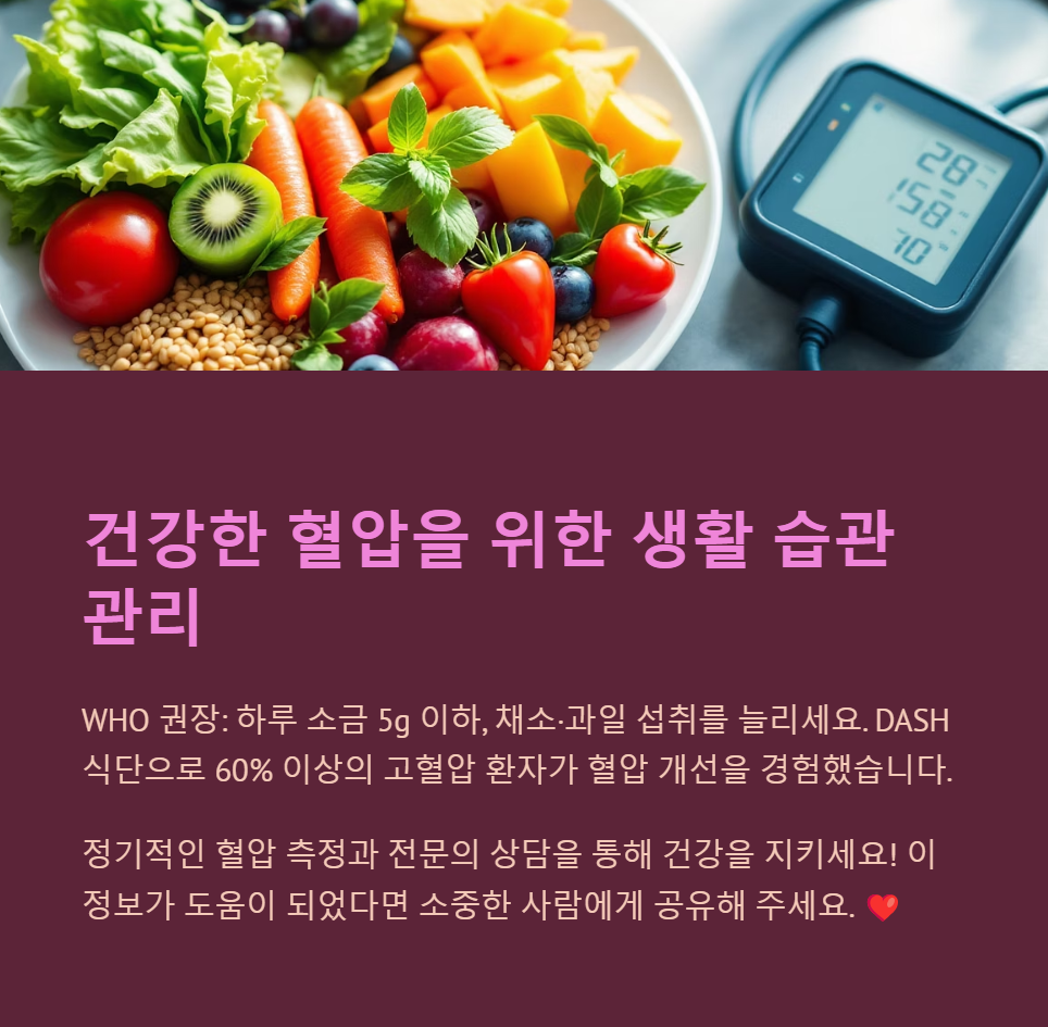 고혈압, 혈압 관리, 건강 습관, 식습관, 스트레스 관리, 수면 건강, 유산소 운동, 저염식, 생활습관병, 건강한 삶