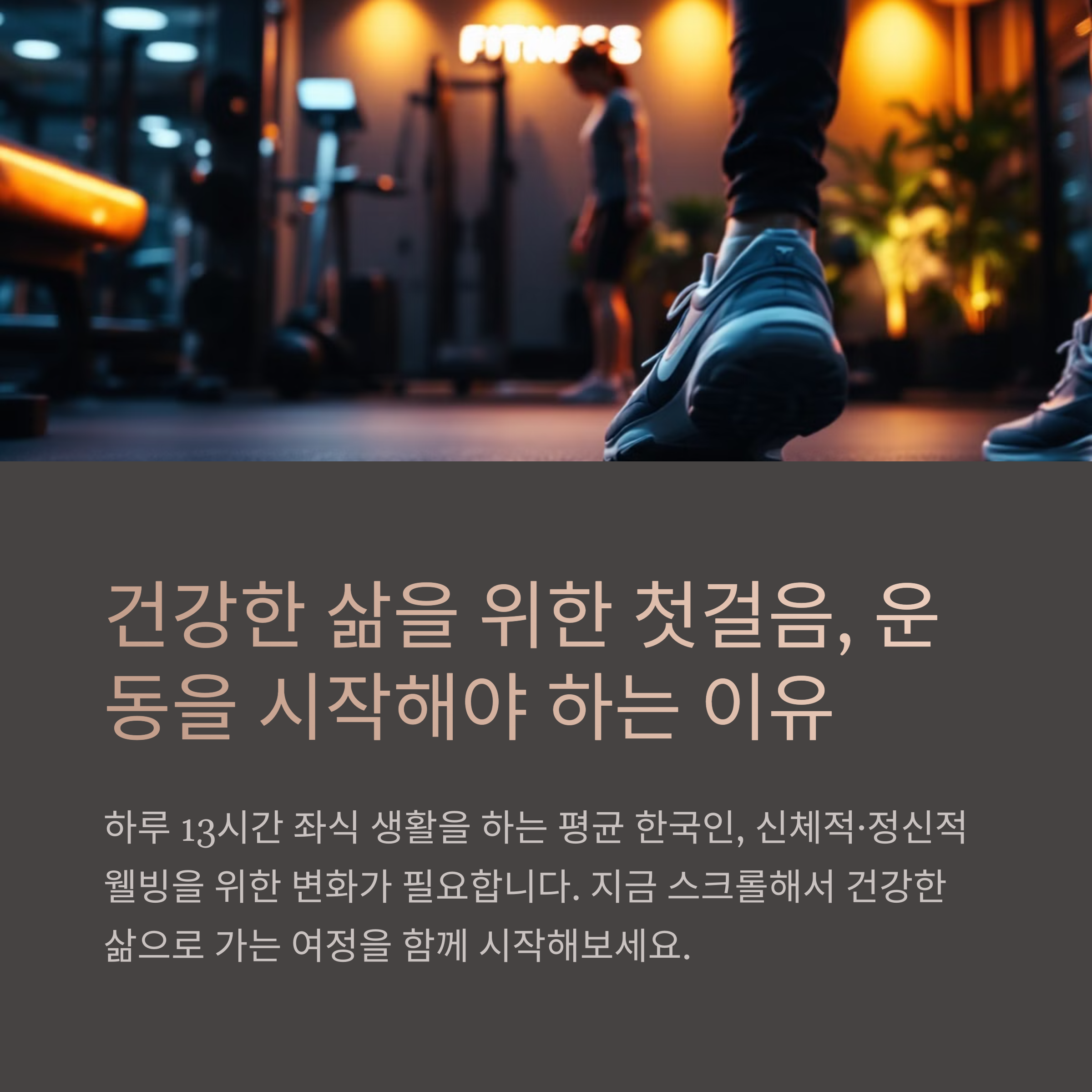 사실 운동은 꼭 해야 하는 거라는 거, 다들 알고는 있죠. 그런데 막상 시작하려면 ‘내일부터’, ‘이번 주말부터’ 하며 자꾸 미루게 돼요. 그런데 우리 몸은 정말 정직하거든요. 내가 움직인 만큼 더 튼튼해지고, 안 움직이면 그대로 퇴화합니다. 건강을 지키고 활력을 유지하기 위한 첫걸음이 바로 규칙적인 운동이에요. 저는 스트레스가 극심했을 때 운동을 시작했는데, 땀 흘리는 게 그렇게 상쾌할 줄은 정말 몰랐어요. 운동은 정신 건강에도 확실한 효과가 있답니다.