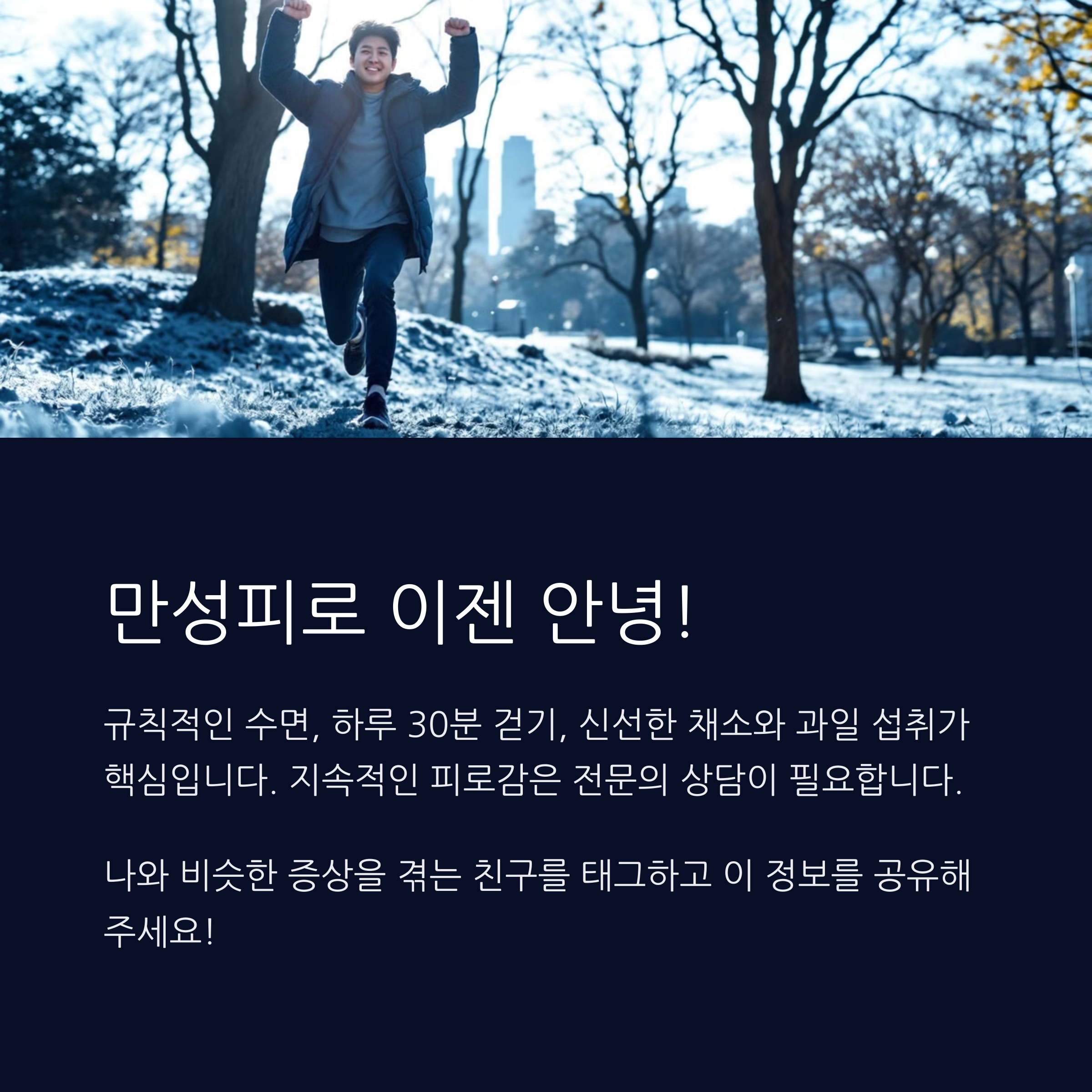 만성피로는 어느 날 갑자기 찾아오는 것도 아니고, 하루아침에 사라지는 것도 아니에요. 하지만 오늘부터 조금씩 실천해보면 생각보다 큰 변화가 찾아올 수 있어요. 이 글이 여러분의 피로를 가볍게 만들어주는 첫걸음이 되길 바랄게요. 만약 도움이 되셨다면, 댓글이나 좋아요로 여러분의 이야기도 들려주세요. 우리 함께 더 건강한 하루를 만들어봐요!