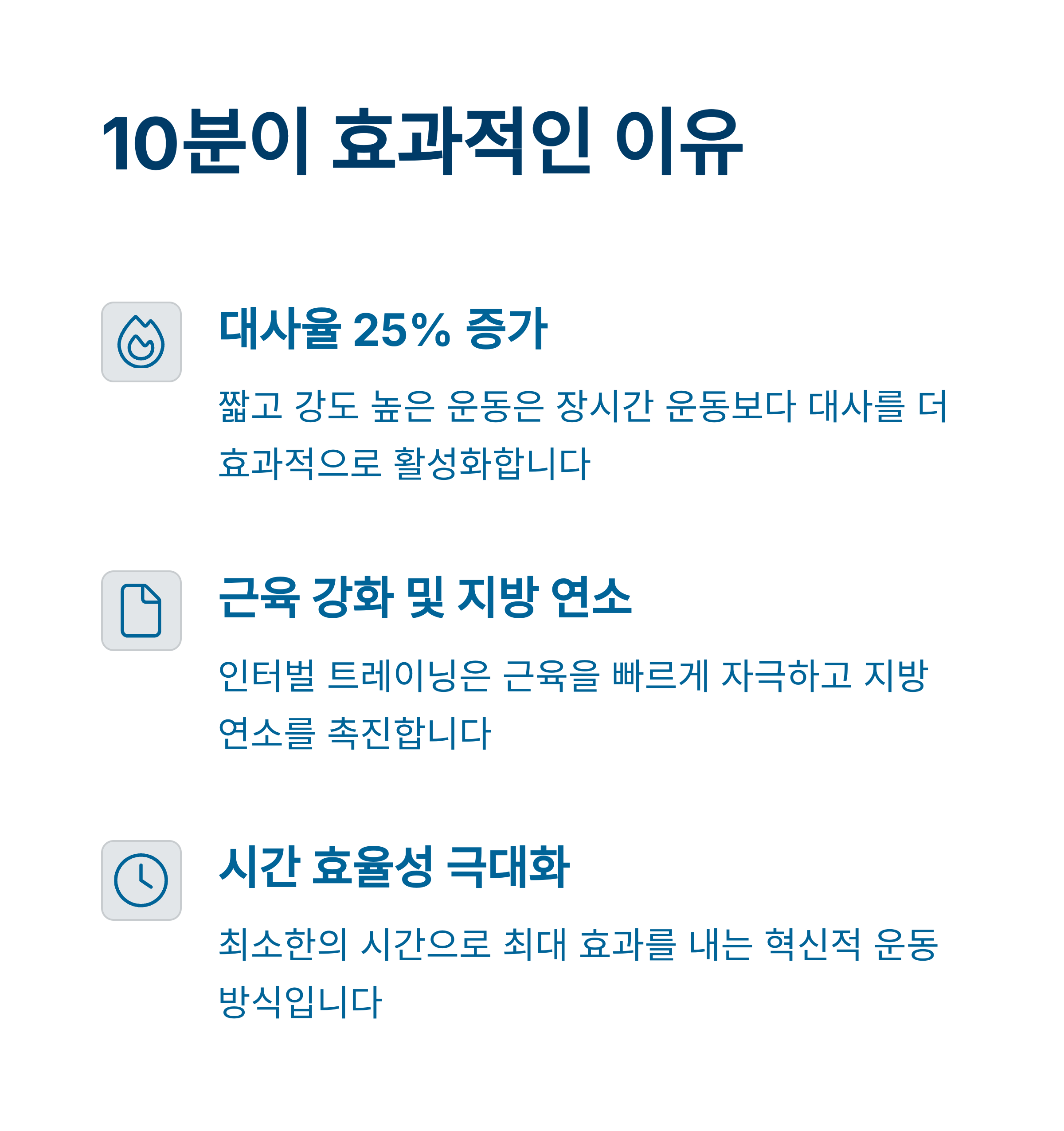 '운동은 최소 30분 이상 해야 효과 있다'는 말, 들어보셨죠? 그런데 요즘 연구들은 말합니다. 짧고 강한 운동이 오히려 더 큰 효과를 낼 수 있다고요. 특히 바쁜 현대인에게는 10분 루틴이 부담도 덜고, 꾸준히 하기도 훨씬 쉽습니다. 이게 바로 ‘작은 변화가 큰 결과를 만든다’는 진짜 이유예요.