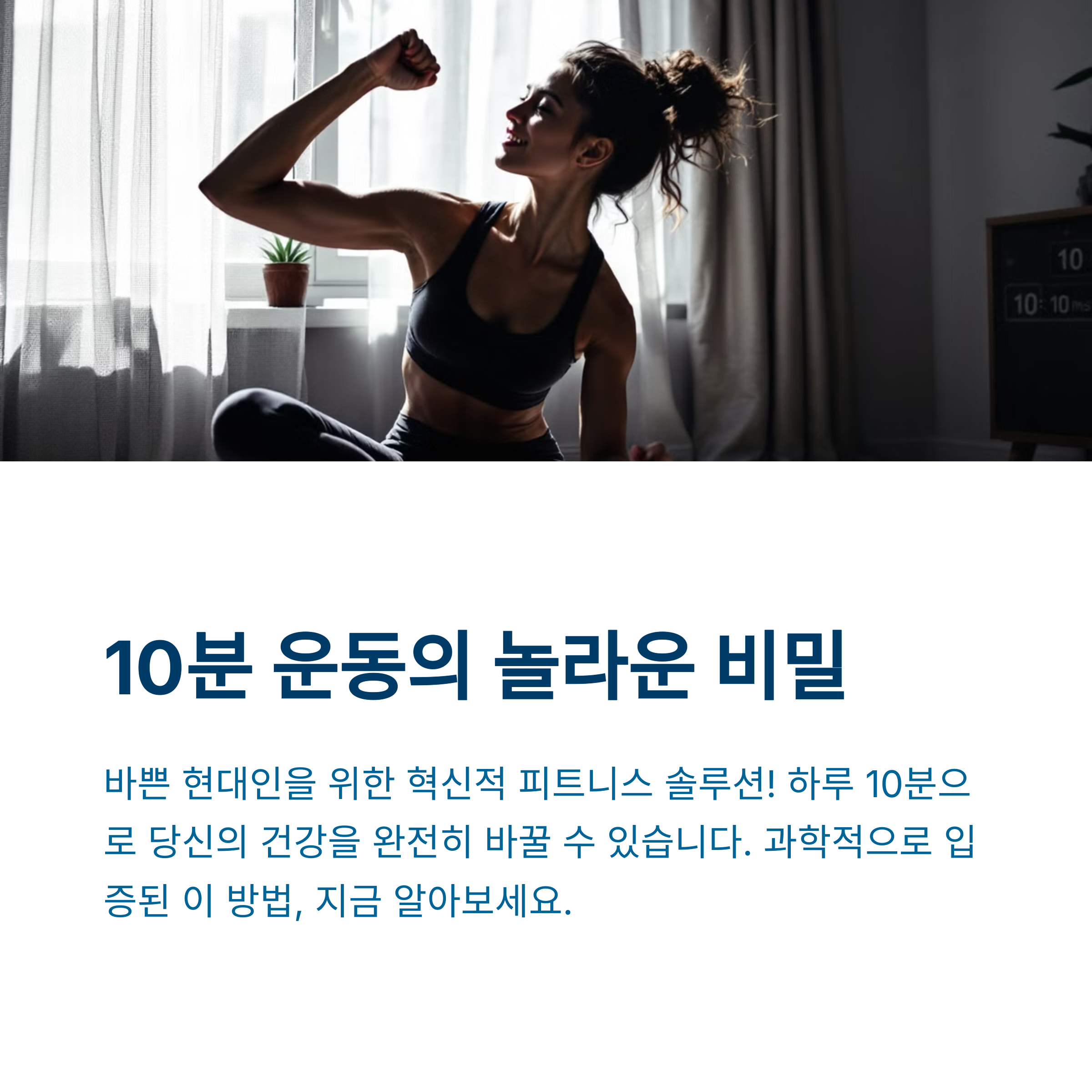 운동할 시간이 없다고요? 딱 10분, 당신의 하루가 달라집니다. 바쁜 일상 속에서도 가능한 초간단 루틴을 소개합니다.