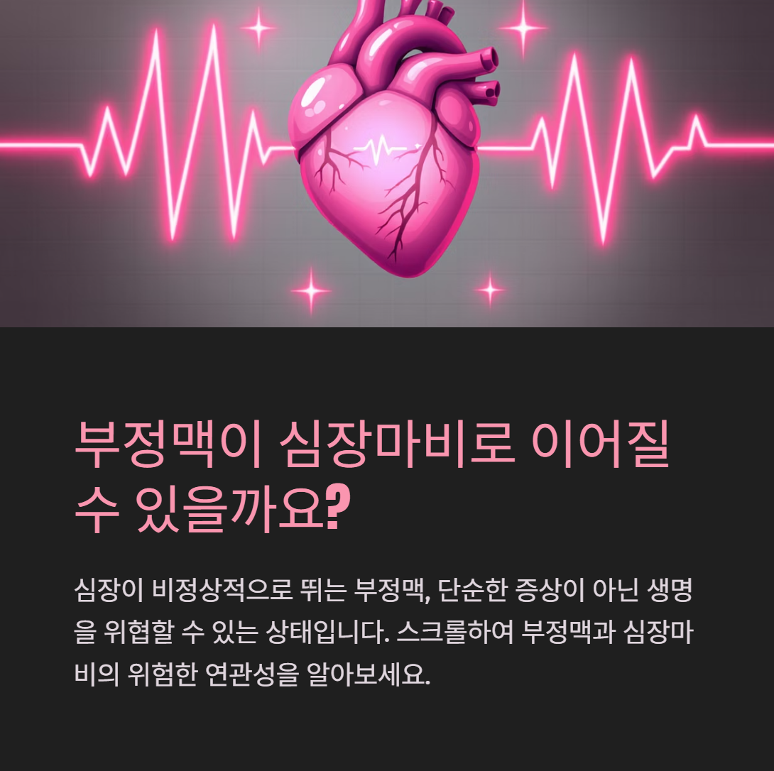 부정맥은 단순히 ‘심장이 좀 빨리 뛰는 것’ 정도로 가볍게 넘기기엔 너무 중요한 신호입니다. 특히 심장마비로 이어질 수 있는 위험한 부정맥은 조기 발견과 관리가 생명을 살릴 수 있는 열쇠예요.