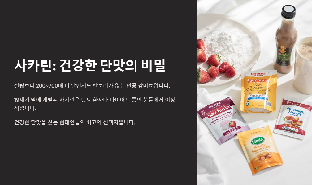 안녕하세요, 여러분! 오늘은 다이어트 중이거나 당 때문에 단 음식을 맘껏 즐기기 힘든 분들에게 꽤 반가운 이야기를 들려드릴까 해요. 예전엔 발암물질로 몰리기도 했지만, 지금은 그 누명을 벗고 재조명되고 있는 사카린에 대해 파헤쳐 보겠습니다. 단맛이 필요하지만 건강은 놓칠 수 없는 우리 모두를 위한 이야기니까요!