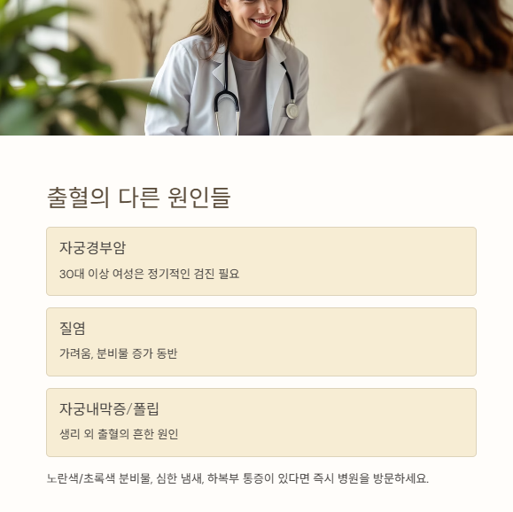 출혈의 원인은 다양합니다. 자궁경부염 외에도 다음과 같은 질환들이 원인이 될 수 있습니다: