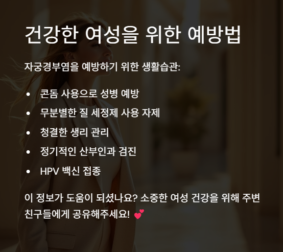 자궁경부염을 예방하기 위해 다음과 같은 생활습관이 중요합니다: