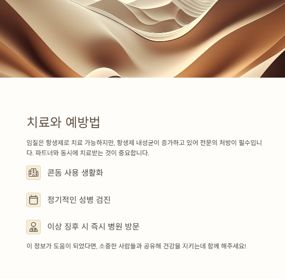 임질은 흔하지만 가볍게 볼 수 없는 성병입니다. 특히 여성은 증상이 없더라도 방심하지 마세요. 조기 발견과 적극적인 치료가 후유증을 막는 가장 좋은 방법입니다. 부끄러움보다 중요한 건 '건강'입니다.