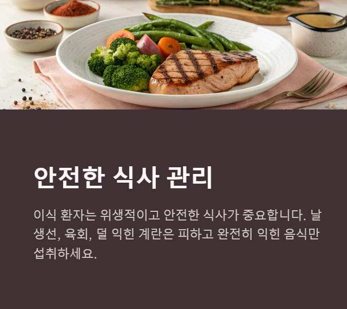 이식 환자는 위생적이고 안전한 식사가 중요합니다.