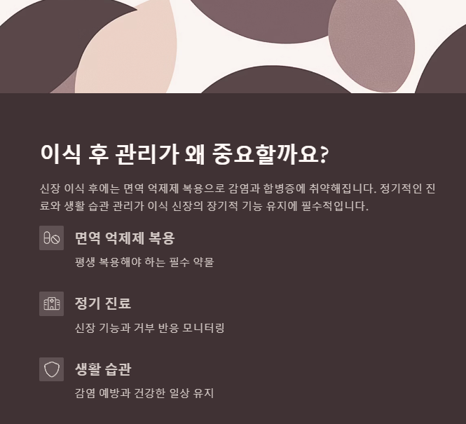 이식 후 건강한 삶을 위한 관리 포인트는 무엇일까요?
