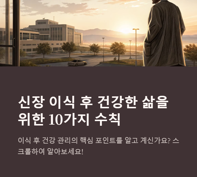 신장 이식 후 꼭 지켜야 할 회복 생활 수칙 10가지