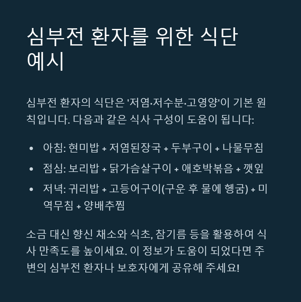 #심부전식단 #저염식생활 #심장질환식이요법 #심부전음식주의 #나트륨제한식단 #심부전영양관리