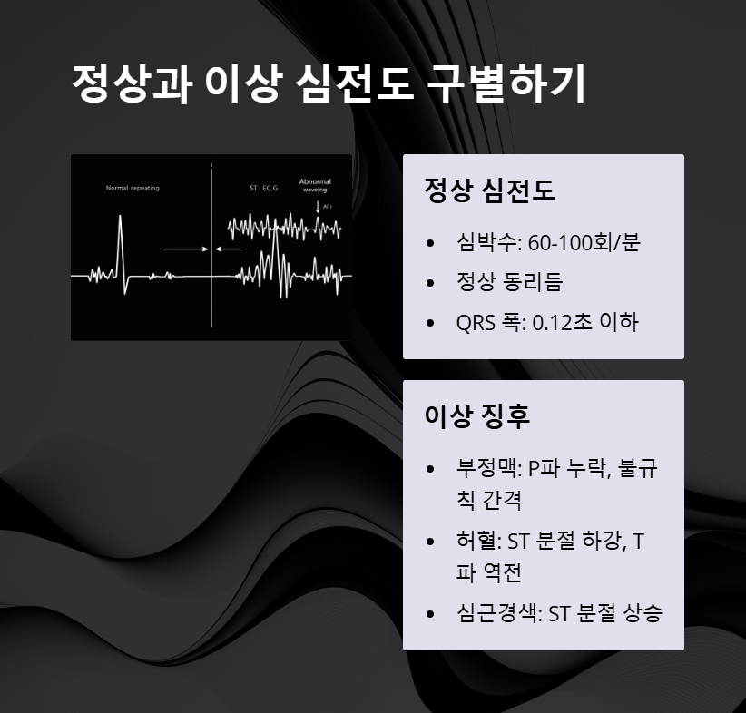 - 이상 징후 해석: 부정맥, 허혈, 심근경색