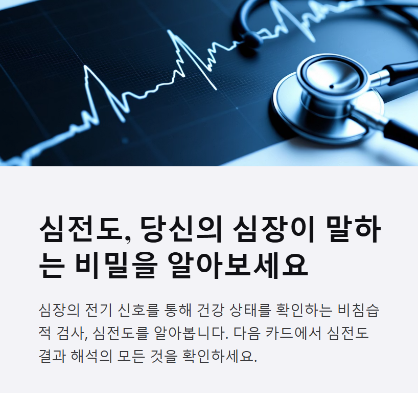 심전도 검사는 간단하지만 강력한 건강 신호입니다. 몸이 보내는 전기 신호에 귀 기울이세요. 조기에 변화를 감지하면, 건강한 심장을 오래 유지할 수 있습니다.