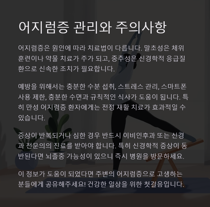 7. 어지럼증 치료 및 관리 팁
