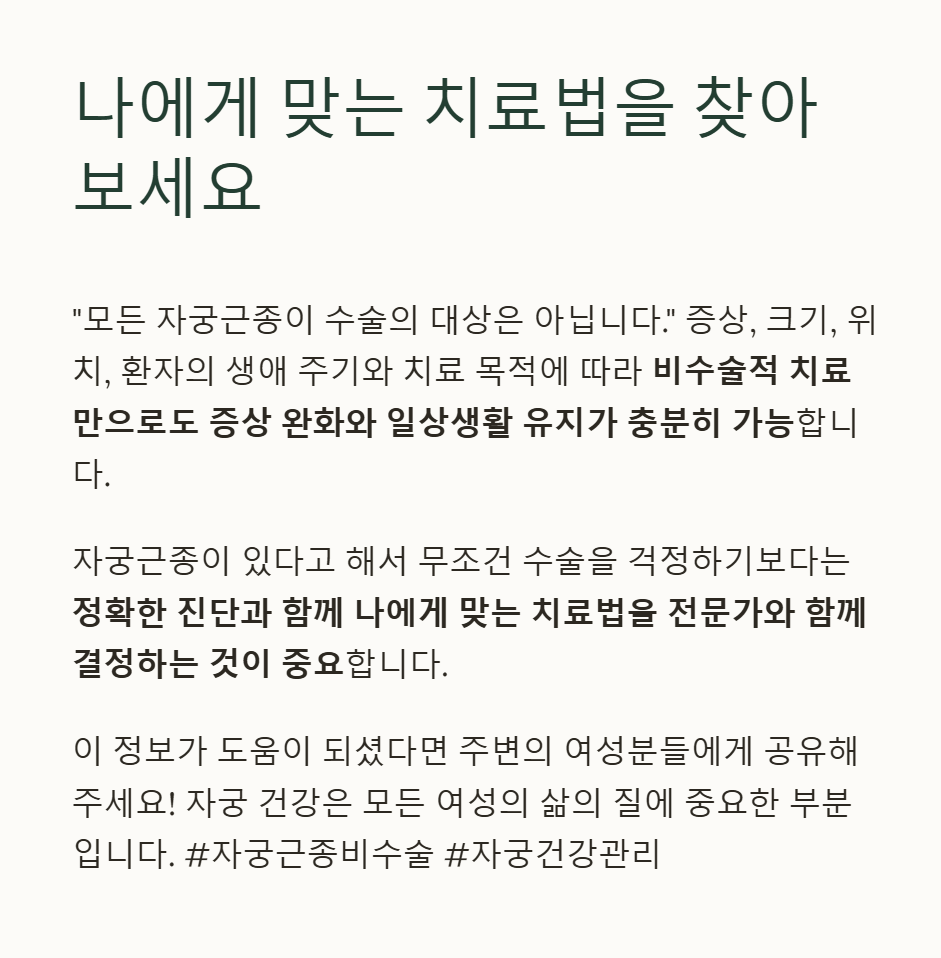 #자궁근종비수술 #고주파자궁근종 #자궁근종자연치료 #자궁동맥색전술 #하이푸치료 #자궁건강관리