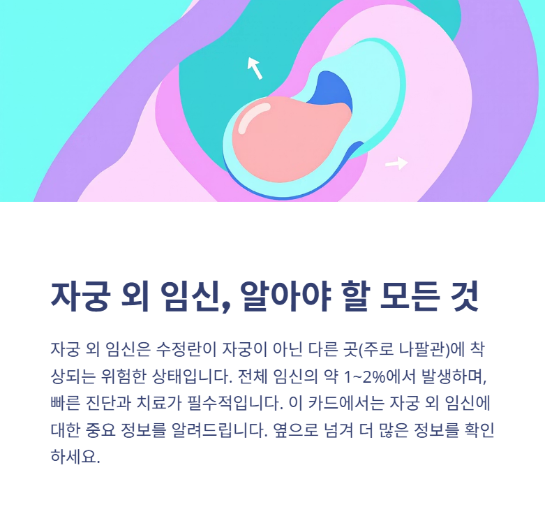 자궁 외 임신(Ectopic Pregnancy)은 수정란이 자궁 안이 아닌 자궁 밖, 특히 나팔관에 착상되는 위험한 임신 상태입니다. 전체 임신의 약 1~2%에서 발생하며, 빠른 진단과 치료가 없으면 생명을 위협할 수 있는 응급 상황으로 번질 수 있습니다.